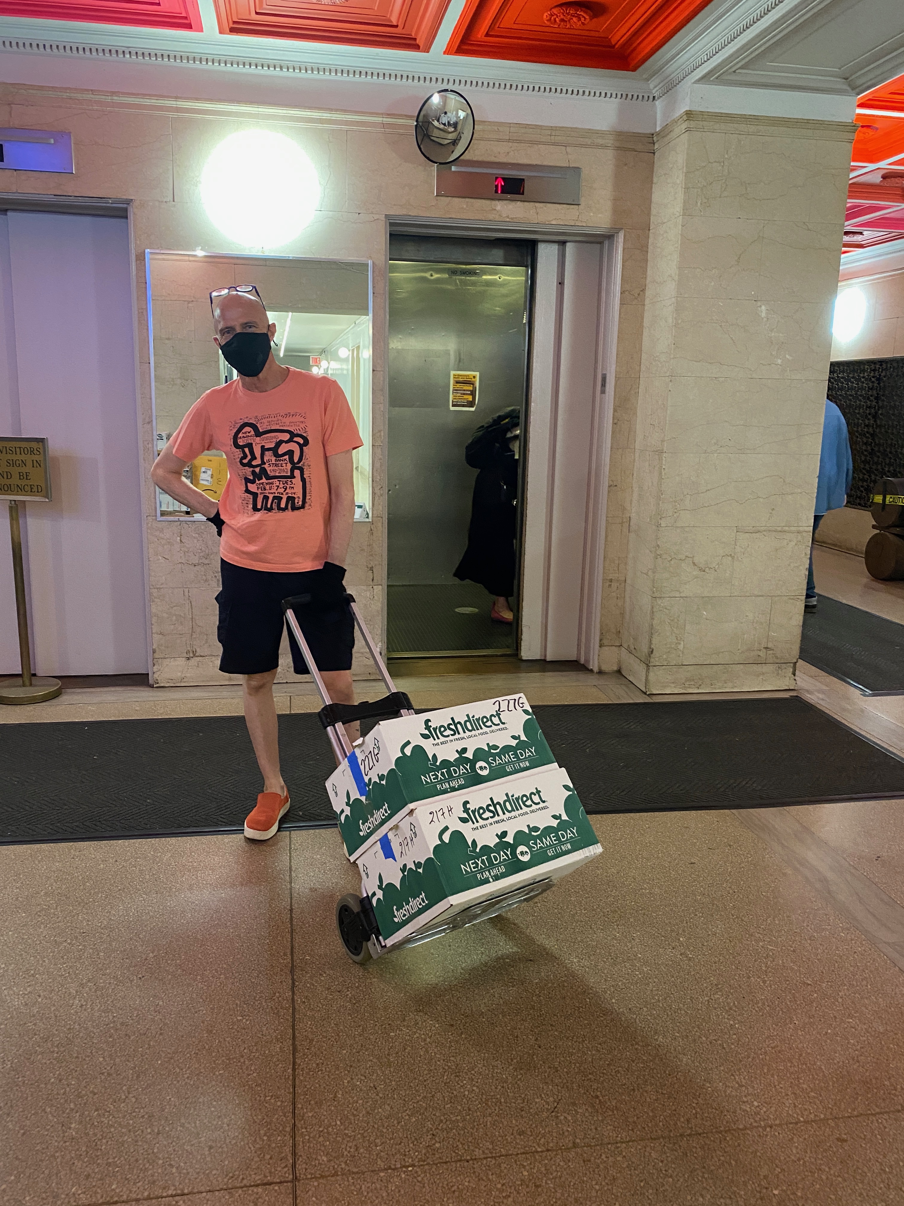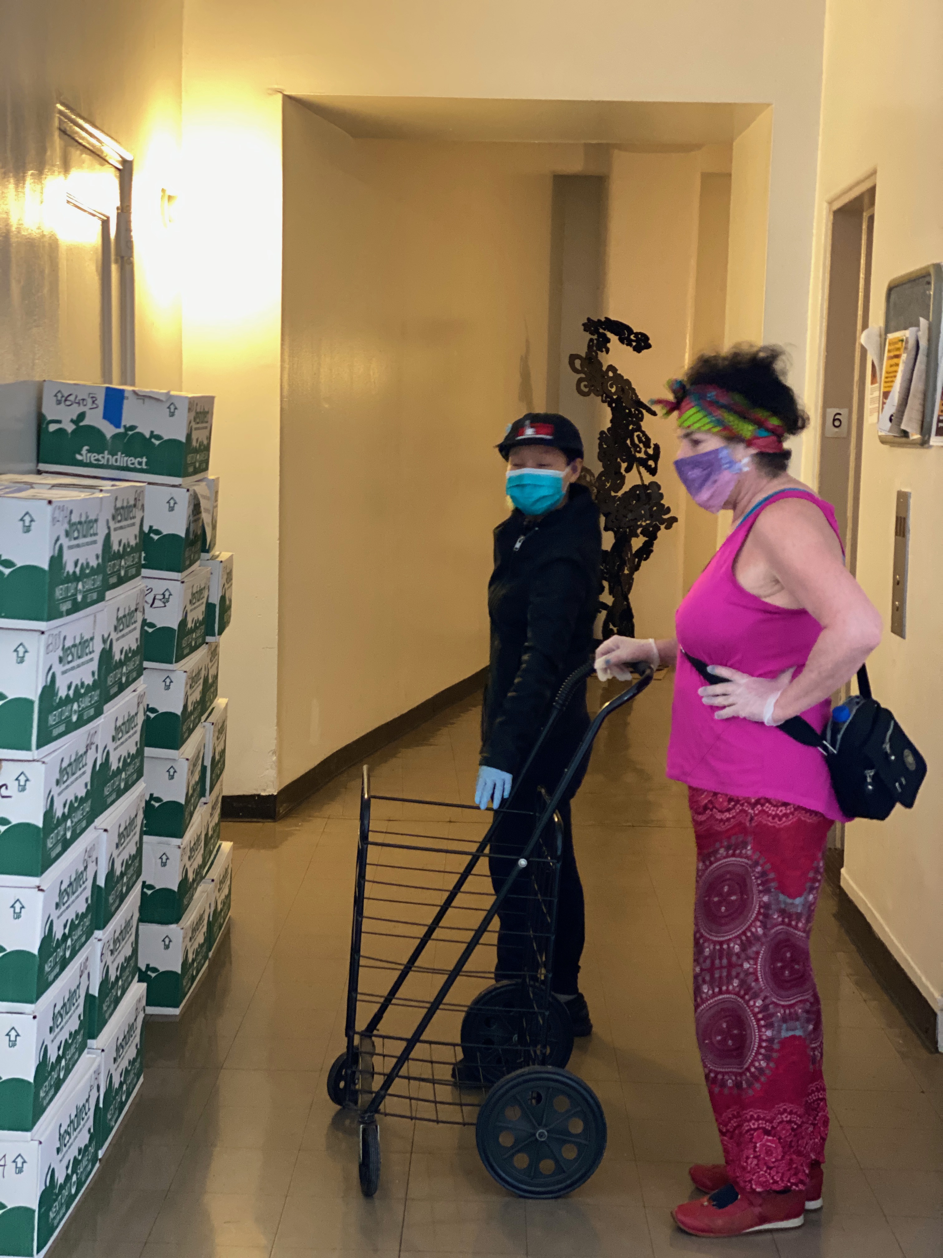 In addition to Erik, also shown in the photograph are a few members of the Westbeth Emergency Response Committee which was formed in early March consisting of resident volunteers – filmmakers, actors, painters, writers, musicians, photographers, etc. Organized into a system of communication and feedback via floor captains, the committee has coordinated the distribution of free masks ( many handmade by volunteers from the Westbeth Beautification Committee), free safety glasses (a donation from former resident), information bulletins, shopping assistance, and emergency help.